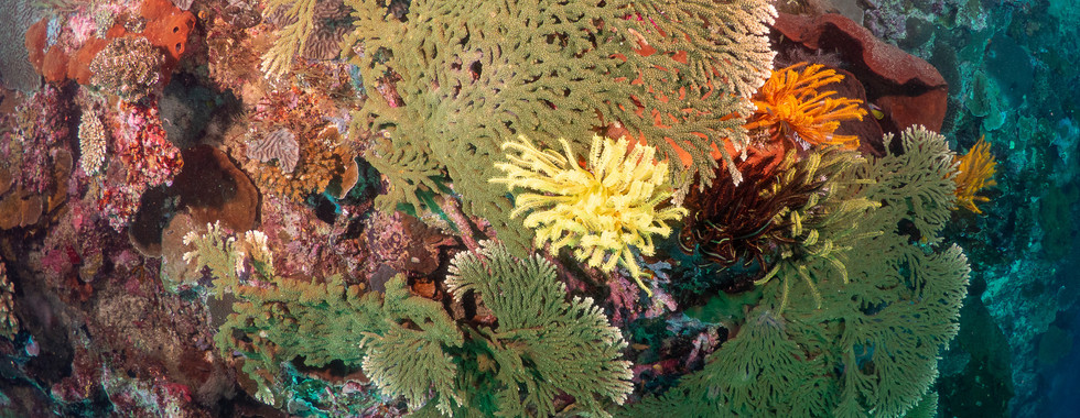 Not only was the boat exotic and spectacular, the 12 day trek served up some of the most amazing coral reefs, exotic creatures, and remote island vistas imaginable. Everyday my roommate would open the porthole cover with great anticipation to see what the day's view would be - needless to say it was never a disappointment! Some mornings we enjoyed coffee watching the sun rise over a volcano - others we saw small atolls that promised spectacular coral reefs - every now and then we saw another vessel - but for the most part we truly felt serene and content in our private world with only another day of diving to look forward to!
