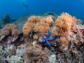 I was lucky enough to have the opportunity to join a 12-day one-way trip through the Forgotten Islands of Indonesia on the yacht Dewi Nusantara. From our first back-roll off the tender we were literally swimming in a rainbow of colors with an endless variety of sea critters. There were prehistoric looking frogfish, psychedelic cuttlefish, and sea horses of all colors and sizes patiently waiting for their photo-op. We swam with schools of wrasse and parrot fish and trigger fish, stopping only to admire the anthias darting in-and-out of their coral homes. Then when we thought we'd seen it all, we would round a corner and see endless stretches of table sized hard corals covered with feather stars and housing anemones, eels, dart fish, and so much more. I couldn't take photos fast enough, and my batteries were dying way too soon. We usually traveled through the night and some mornings we would wake up to sunrise over volcanoes and others to .... nothing ... just a small atoll in the middle of the ocean. In the beginning we would eat first breakfast and think -- this will be an easy, run-of-the-mill, morning dive. But we quickly learned they were some of the best sites on the trip. The views underwater were of pristine reefs in more colors that you can imagine. Swimming with the turtles, and peeking in the soft corals to look for tiny creatures was truly special - I loved being able to see the ocean in the way it is meant to be - free, clean, and full of life.